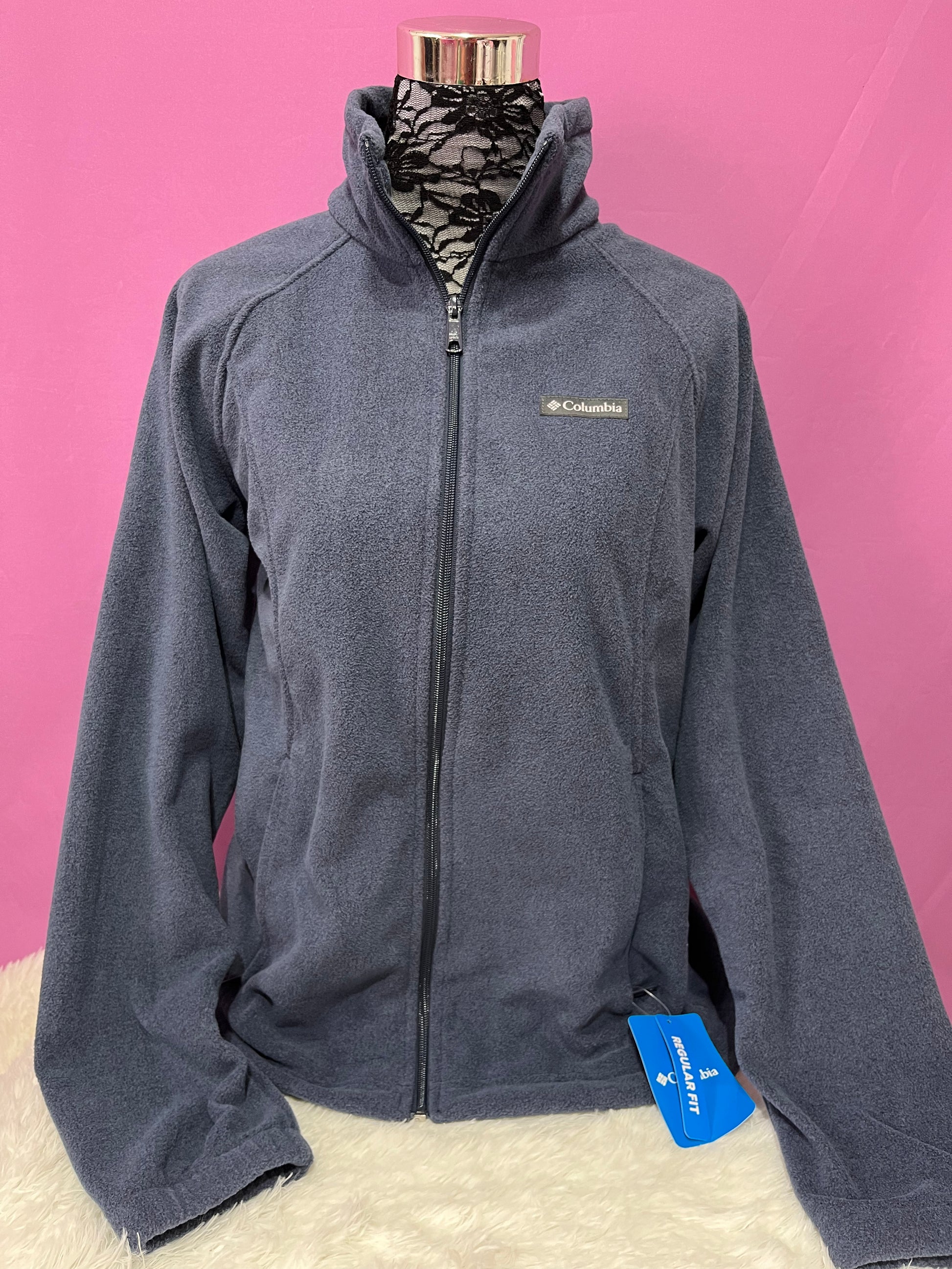 Polar Columbia color Azul oscuro, cierre completo con bolsillos y sin gorro, tallaje normal.